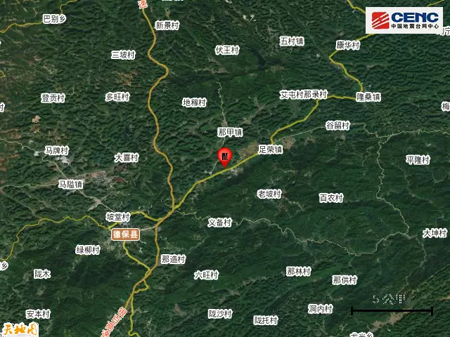 附近村鎮: 本次地震周邊5公里內的村莊有岜意、念色村、垌干下屯、大章村、乙屯、那排、農豆村、龍忙、峒干、中屯,20公里內的鄉鎮有那甲鎮、足榮鎮、城關鎮、馬隘鎮、興旺鄉、隆桑鎮、榮華鄉、巴別鄉、五村鎮。