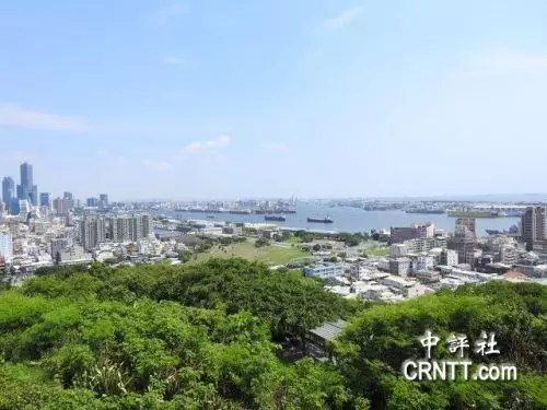 從壽山遠眺高雄港旗津出海口。(中評社 蔣繼平攝)