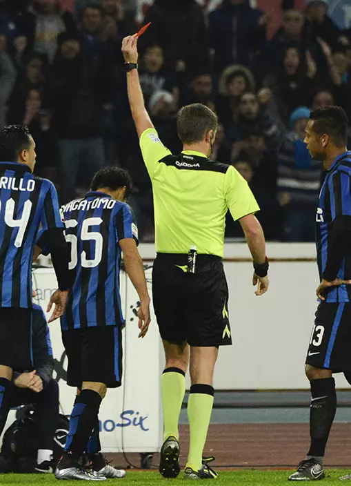 主隊在那不勒對國米的意甲賽事足足九場不敗,開賽僅65秒,恩斯治尼左路斜傳,守衛解圍不遠,荷西卡利祖喂前,阿根廷國腳希古恩一控轉身射入,為拿玻里領先1:0。賽前排榜首的國際米蘭,完半場前要少打一人,長友佑都犯規,換來第二面黃牌被逐離場。
