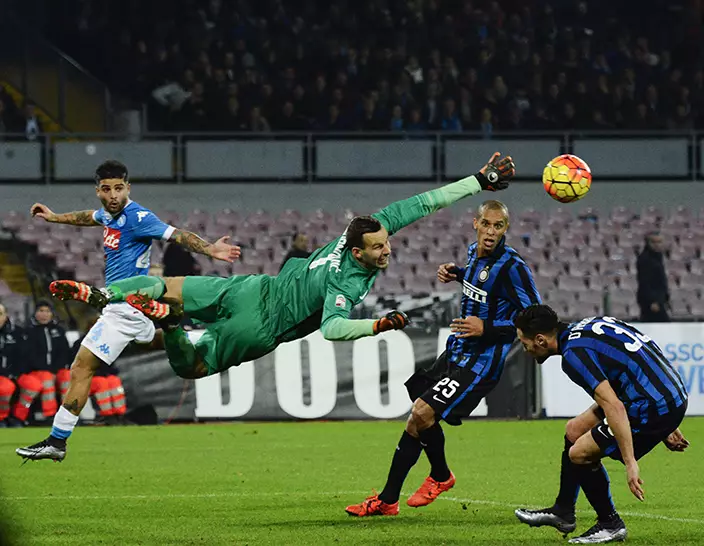 意大利甲組足球聯賽上演榜首大戰,拿玻里在主場以2:1擊敗國際米蘭。