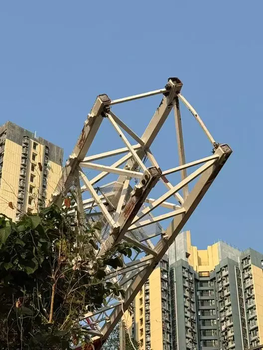 葵涌一個房委會的地盤發生天秤倒塌意外。香港交通及突發事故報料區FB群組圖片