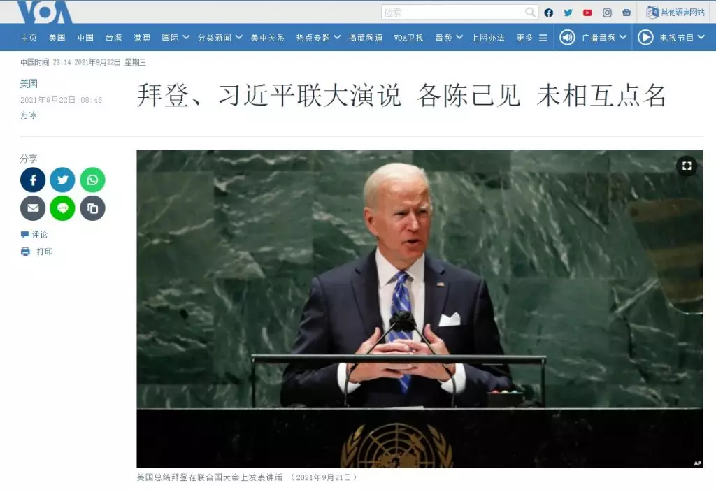 結果拜登講話時完全無點中國名,和特朗普形成鮮明對照,拜登雖然在談到一些議題時的批評了讓人聯想到北京,但避免點名。他在全篇發言中,僅在談到少數民族和婦女權利時舉例新疆,但也沒有使用美國政府過去講的「種族滅絕」的提法。