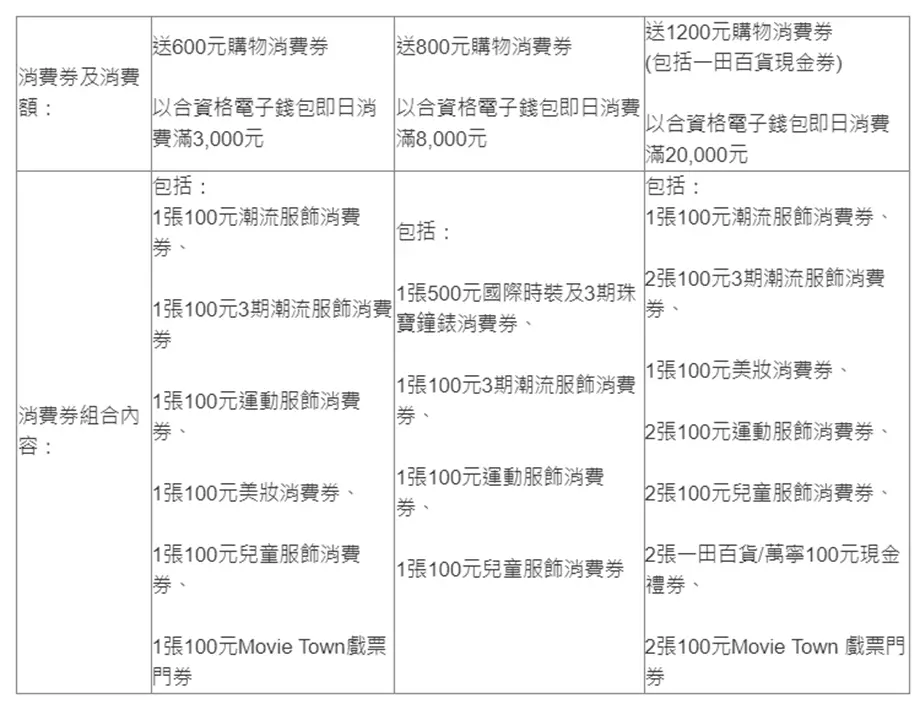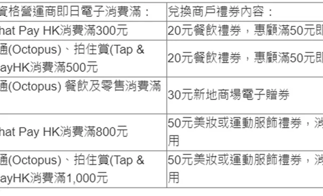 此外,沙田新城市廣場於10月1日至11月30日期間,推出「電子消費券加倍賞」,市民最高可獲2,600元購物消費券回贈。禮券可當現金使用的購物贈更涵蓋超過110個商戶,包括國際時裝、運動服飾、兒童用品、珠寶鐘錶、美容、及戲院等,詳情如下: