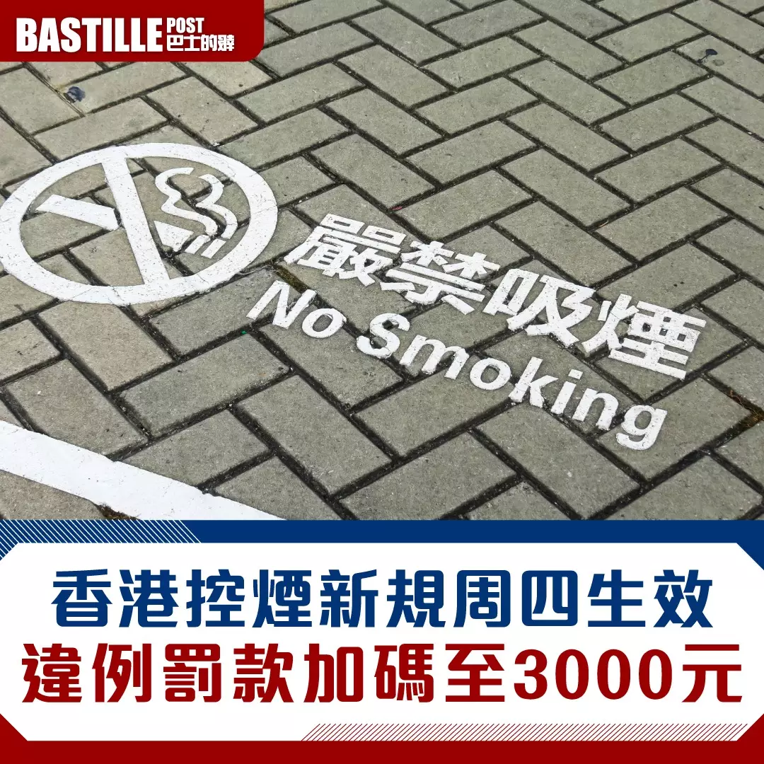 衞生署提醒市民,《2025年控煙法例(修訂)條例》中針對吸煙罪行的其中3項修訂將於本周四(1月1日)生效,包括擴大法定禁煙區至幼兒中心、院舍、學校、醫院等出入口3米範圍內的公眾地方;公共交通工具輪候點排隊時禁吸煙;吸煙罪行定額罰款提高至3000元等。