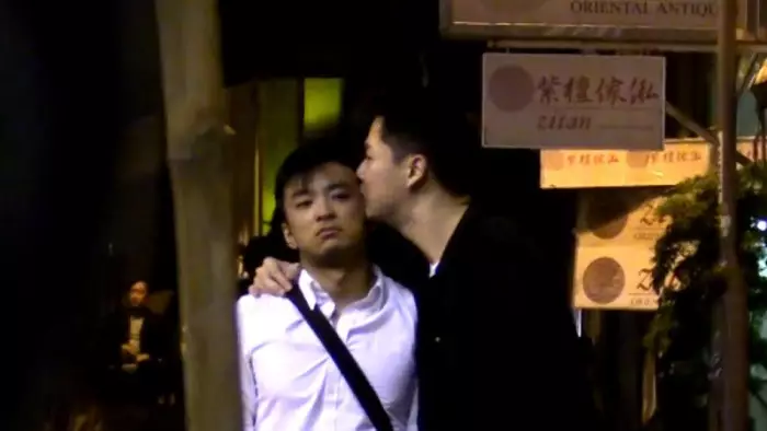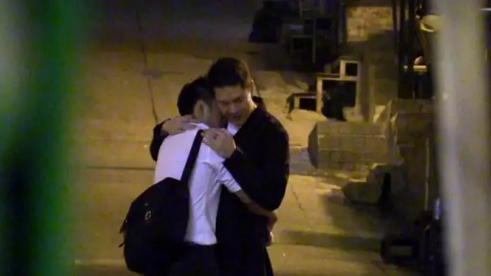 阿邦在凌晨2時許,同男友人離開酒吧。據知兩人在酒吧已飲了酒2小時,他們於卑利街斜路步行而下。期間阿邦更主動吻向男友人左額,又緊緊攬實對方,似乎難捨難離,之後阿邦自銀包取出金錢,幫對方截的士先離開,自己就去附近便利店買紙巾及買香煙。