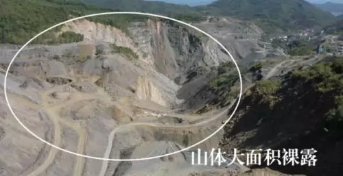 原本青翠的山體大面積裸露、傷痕纍纍,幾十米深的礦坑猶如大自然的一個巨大傷口,堆場長期超範圍、超總量堆放廢石……