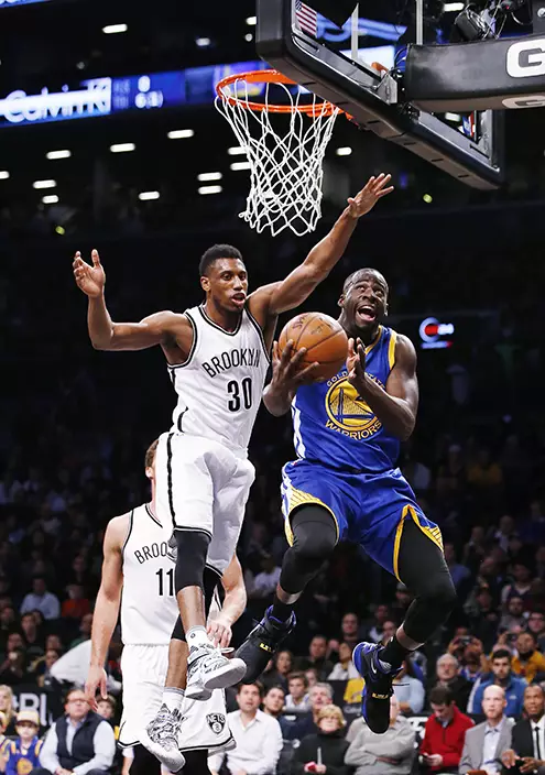 上場艱辛擊敗速龍的勇士,在上半場尾段再度手緊,最後1分49秒一分未得。第三節開始仍未能進入狀態,被籃網連取4分,以58:57反超前,全場第一次領先。好在居里休息回來,單節取得16分,幫助勇士重新領先。