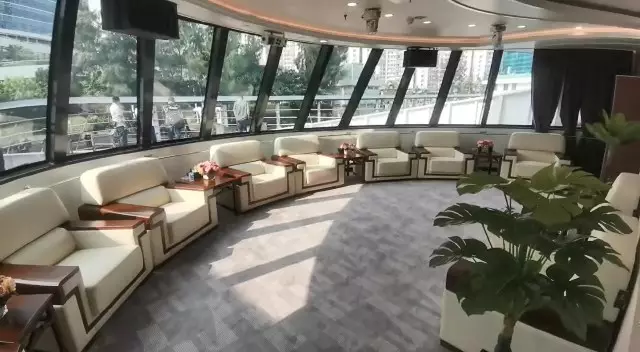 「東方之珠號」登船大堂位於紅磡(南)碼頭,公眾首航將於今日晚上7時啟航,由紅磡出發,徐徐往尖沙嘴方向而行,欣賞維港兩岸景色和幻彩詠香江後,便返回紅磡結束行程。