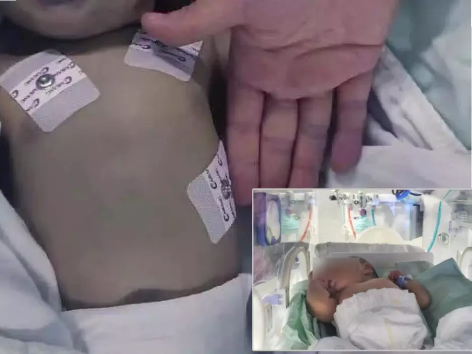 亞硝酸鹽中毒的嬰兒送往醫院時全身發紫。(網上圖片)