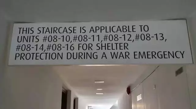 我這樣說,絕對不是過分解讀。新加坡作為一個地緣環境並不那麼樂觀的小國,隨時都保持警覺是必要的生存法則。其中一個證據就是,新加坡所有的公寓,都修有防空庇護所,英文叫household shelter或者叫home shelter。