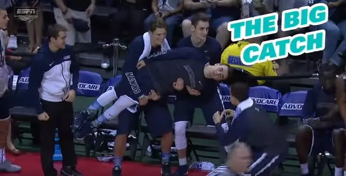 球場上的十佳鏡頭往往來自球星,不過坐冷板凳的隊員也可有精彩表現。網民上載影片,見到美國有大學籃球隊一位板凳球員的神奇助興表演。