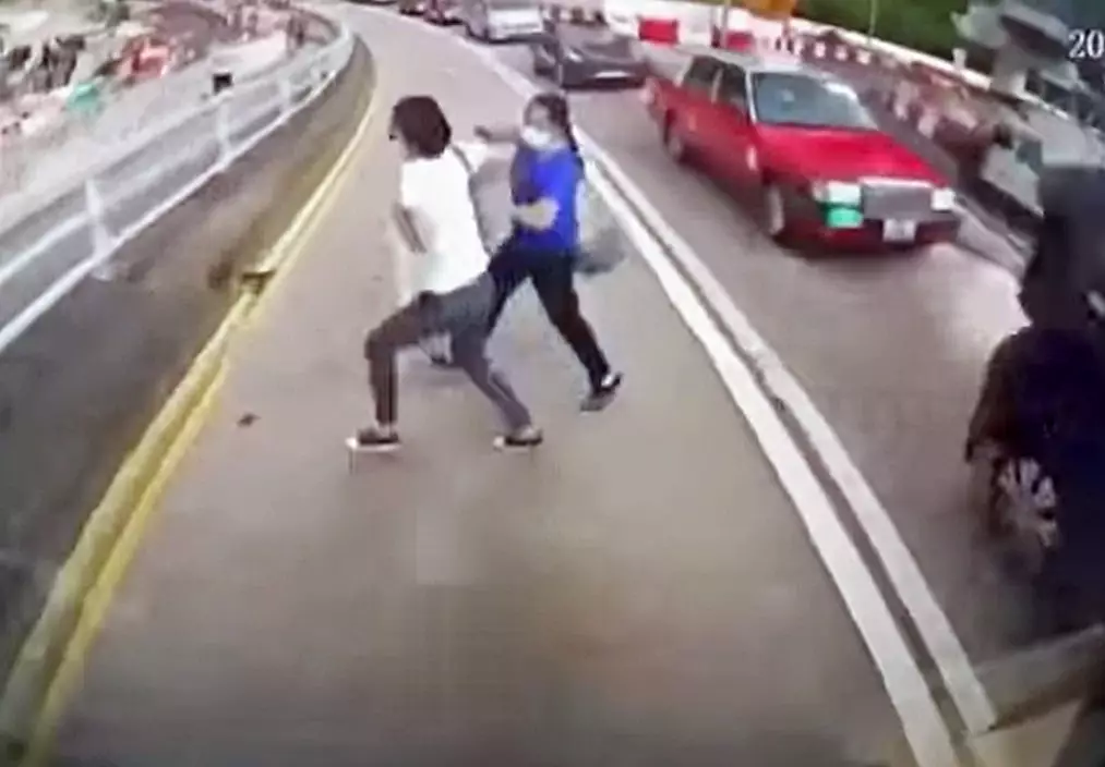 根據網上流傳的車cam影片可見,當時一輛小巴正沿連德道天橋向秀茂坪方向行駛,對面線則車多擠塞,此時兩名牽著手、分別身穿白衣及藍衣的女子,突然「楔車罅」衝出馬路,兩人急步跑,惟在接近石壆位置被駛至的小巴撞倒,其中藍衣女子被撞飛數米外,幸小巴及時煞停,未有將女子捲入車底。