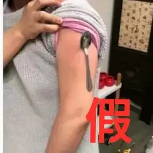 網傳「打疫苗後胳膊上注射處產生了磁性,甚至可以吸附鐵勺」。