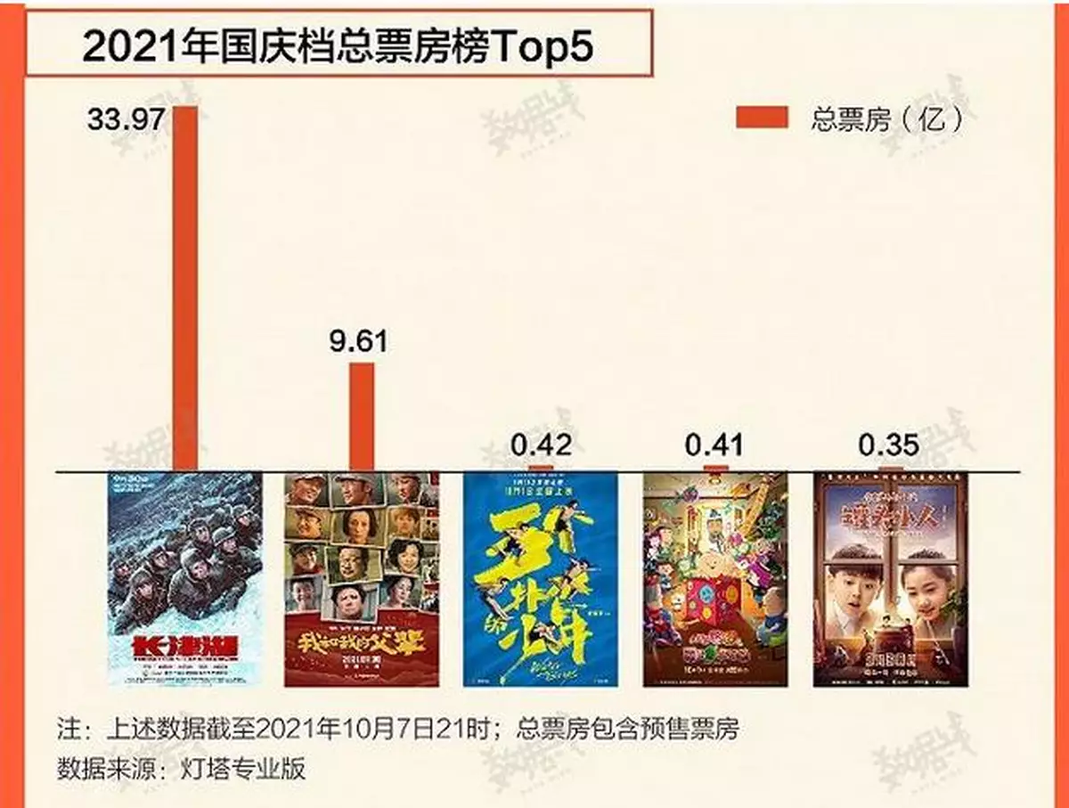 另外,在主旋律大片的引領下,今年國慶檔的票房僅次於疫情前2019年「最牛國慶檔」,《長津湖》更躋身全球年度票房TOP5。