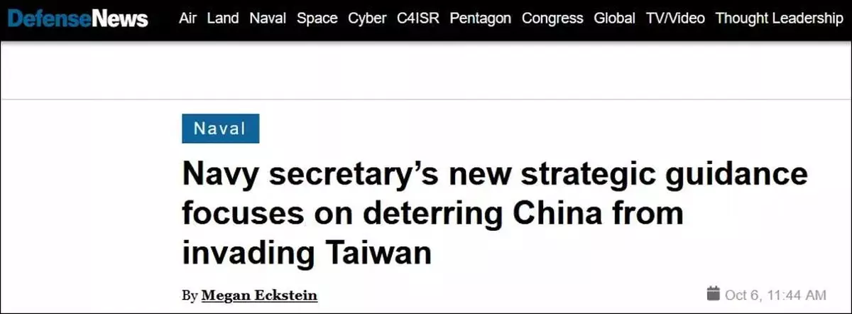美國《防務新聞》(Defense News)報道,美國海軍部長將於本週發佈一份戰略指南,主要內容為概述美國海軍和海軍陸戰隊將如何保持全球海上主導地位,加強戰略夥伴關係,並增加對抗中國的能力。