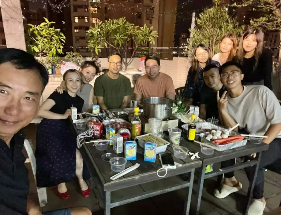 新思維主席狄志遠(左)在社交平台發文,貼上和一班年輕人燒烤的相片。狄志遠Facebook截圖