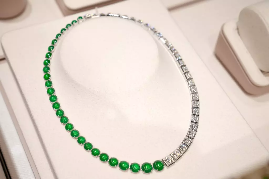 翡翠與鑽石相結合的創新產品。巴士的報記者攝
