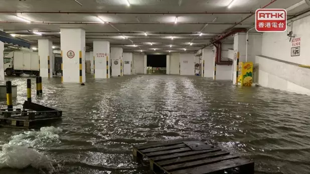 受颱風「圓規」引發的風暴潮下,柴灣有停車場水浸。