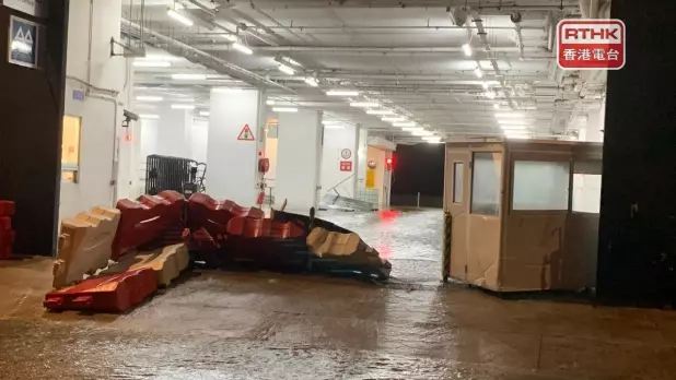 柴灣嘉業街近海邊的工業大廈停車場及車輛維修中心出入口均水浸,其中在嘉業街的一間車輛維修中心,海水倒灌入停車場,再湧到停車場另一個出口,沖毀停車場的更亭及水馬。