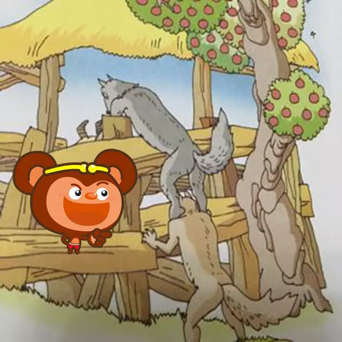 只見狽蹲下身子,讓狼騎到脖子上。狽站立起來,把狼馱得很高,然後狼就用它的兩條前腿攀上羊圈,猛地捉住了羊圈邊上的一只羊。
