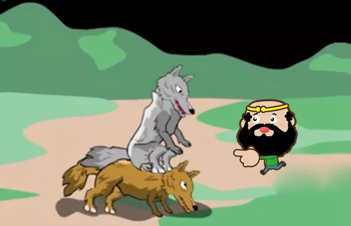 過了好一會兒,狼眼珠一轉,想了個辦法,在狽耳邊一說,狽連連稱讚狼的腦子好用。