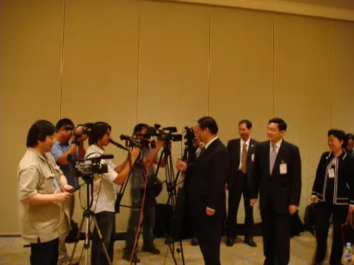 入到間房,新聞司官員好自然想將他引到在座位前的記者準備介紹,點知習大大一入房就望到站在後排預備拍攝的攝影師們,於是同新聞司講先同攝影師握吓手先,然後就自己走咗過去,攝影師個個右手都攞住部機影緊他,搞咗好耐先握到手,場面都有少少尷尬,習大大慢慢等仲笑笑口咁話:你們很敬業呀。冧到啲攝影師笑晒。