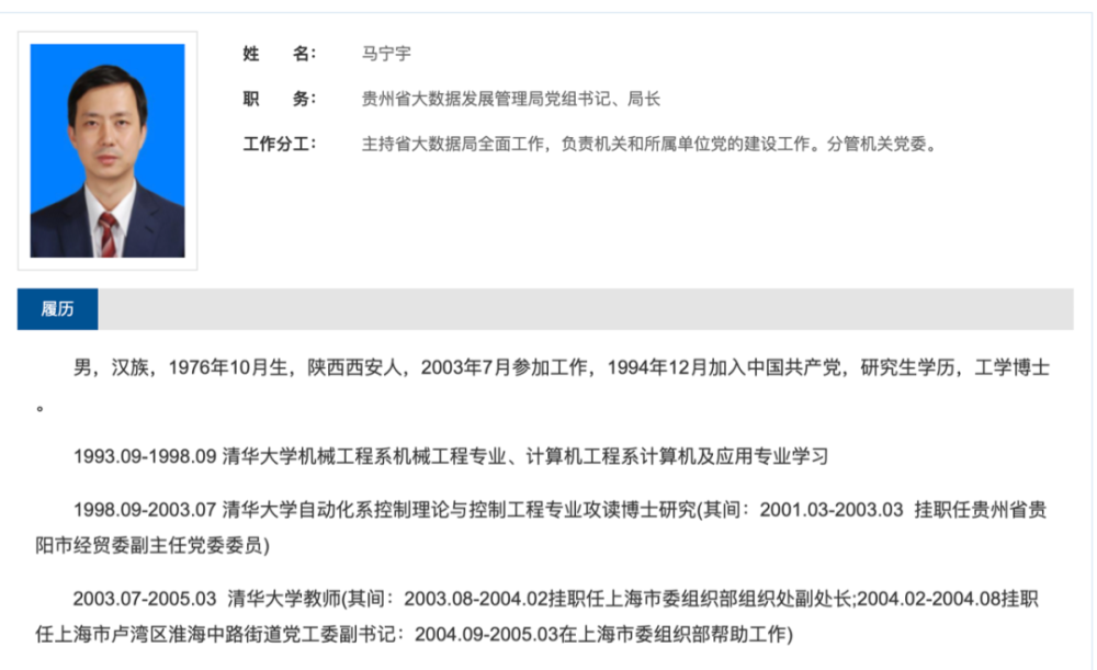貴州是中國首個國家級大數據綜合試驗區,貴州省大數據發展管理局成立時,是全國唯一一家省政府直屬的正廳級大數據行業管理部門,馬寧宇為首任局長。