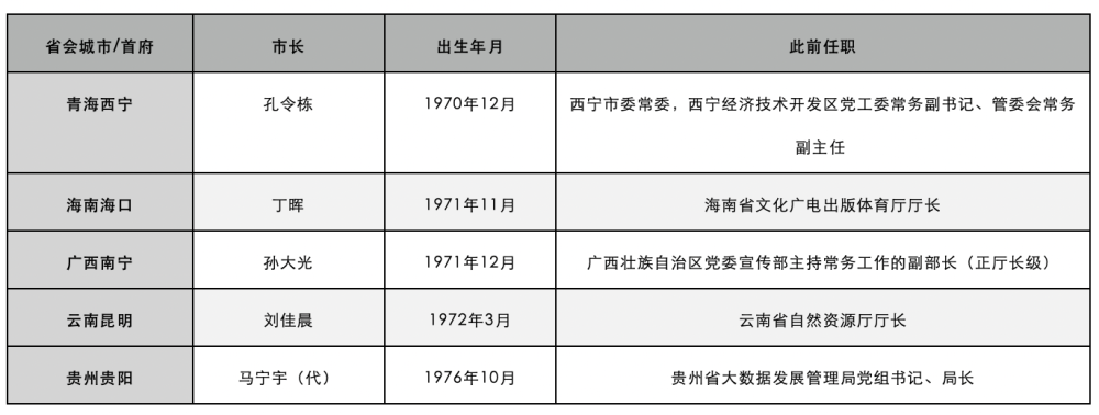 政知君注意到,全國27個省會/首府的政府一把手中,「70後」共有5人。