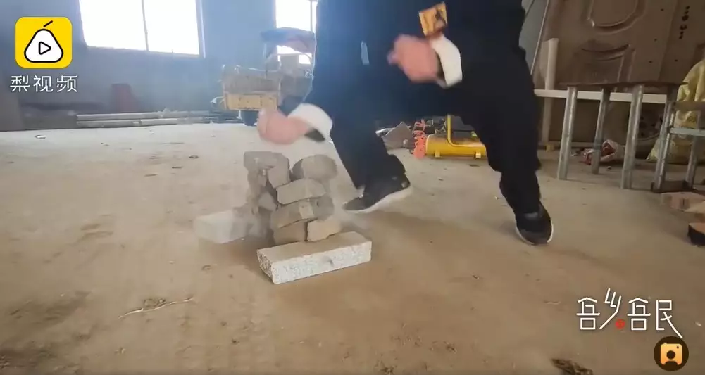 據內地媒體報導,李激光中國八極拳鐵砂掌第十代傳人,經過多年練習練得威力強大的鐵砂掌,不僅可以拍磚,更能將鐵器等硬物打彎,相當厲害。
