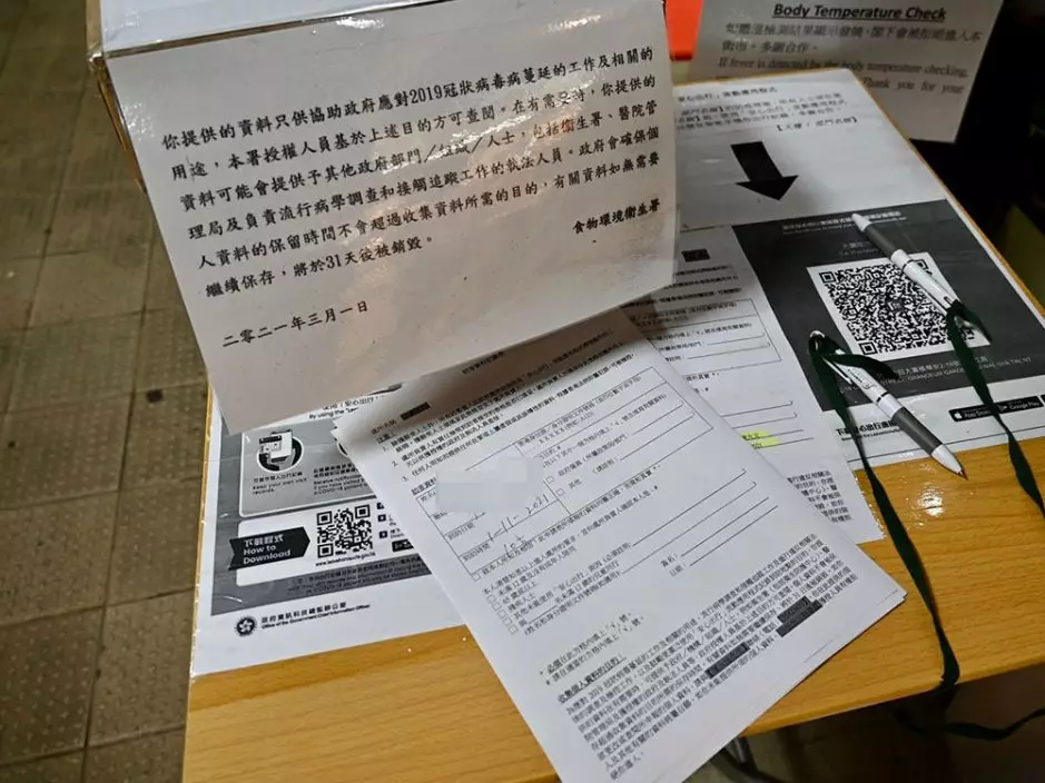 現場所見,有市民拉着買餸車到街市門口打算入內時,始知新措施已經執行,於是向職員查問可否填表入內,當職員告知65歲或以上長者可照舊「填紙仔」後,該名街坊隨即填表,但僅填上姓名、電話、進入日期及時間,未有寫上身分證明號碼,亦未有簽名,甚至沒有放入收集表格箱內,任由紙仔隨處收,職員亦未有理會及上前檢查。