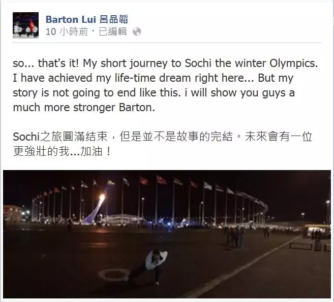 雖然被冷待,但 Barton卻得到不少網友支持。索契之行結束之際,Barton 在Facebook留言說︰「Sochi之旅圓滿结束,但是並不是故事的完結。未來會有一位更強壯的我...加油!」
