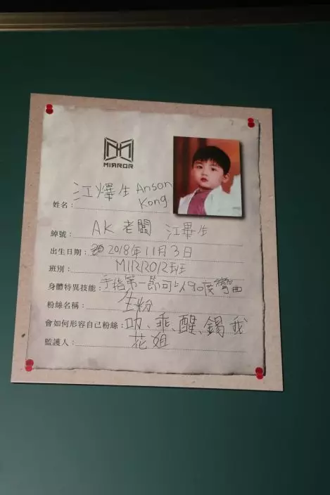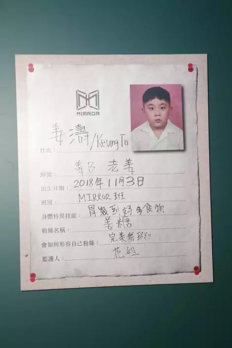 會場設有展覽區打卡位,展出MIRROR出道至今獎項、劇照、演唱會相片、口罩等,最吸引則是12子童年照片,讓人發笑,姜濤童年肥仔照再現、柳應廷(Jer)面圓如波、邱傲然(Tiger )留着冬菇頭、呂爵安(Edan)童年現在變化不大,江熚生(Anson Kong)小時候已眼大大輪廓清晰、盧瀚霆(Anson Lo)則保持帥氣。