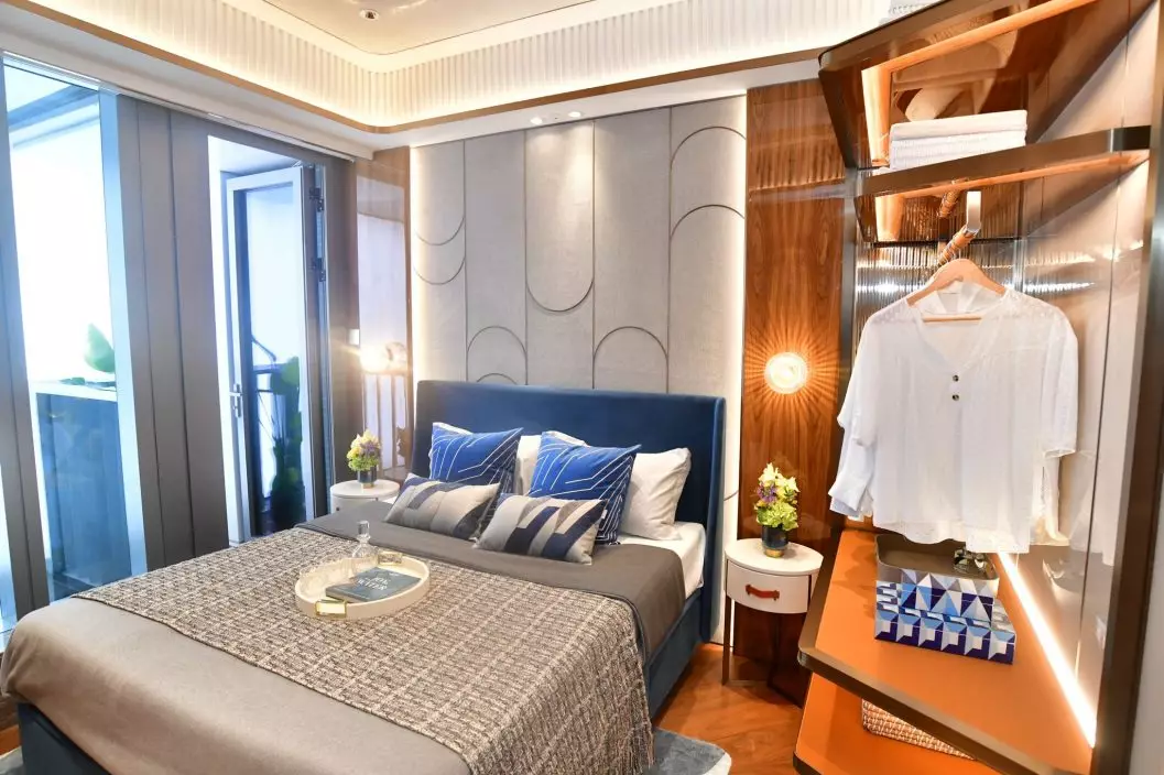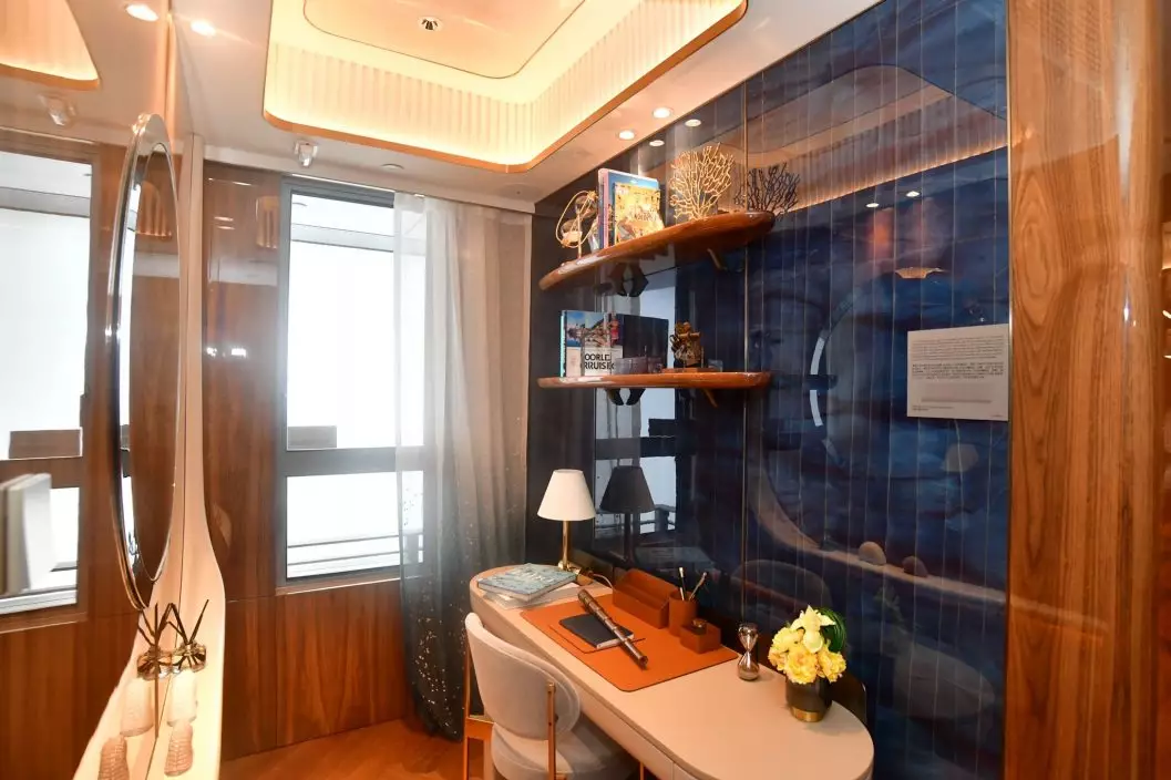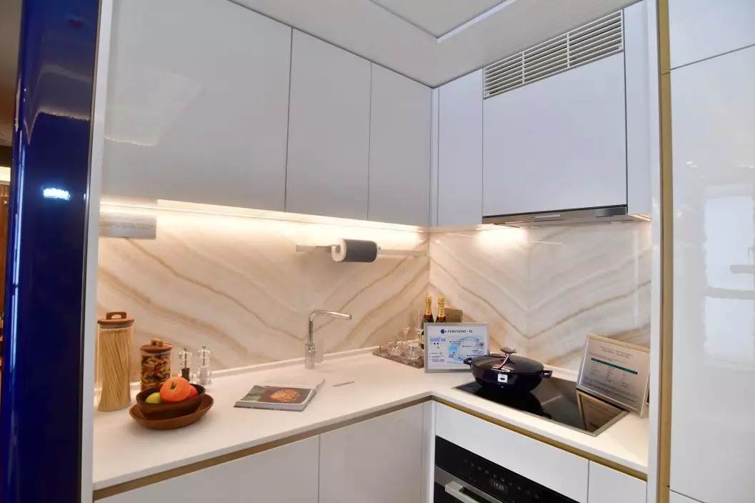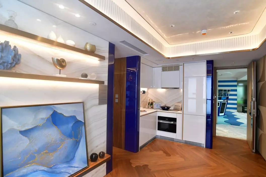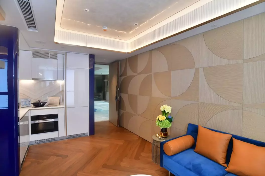會德豐地產旗下啟德MONACO ONE ,今日開放一個連裝修示範單位,以2B座28樓B室為藍本,面積522方呎,屬3房戶入門版,採開放式廚房設計,並以超級遊艇作主題。