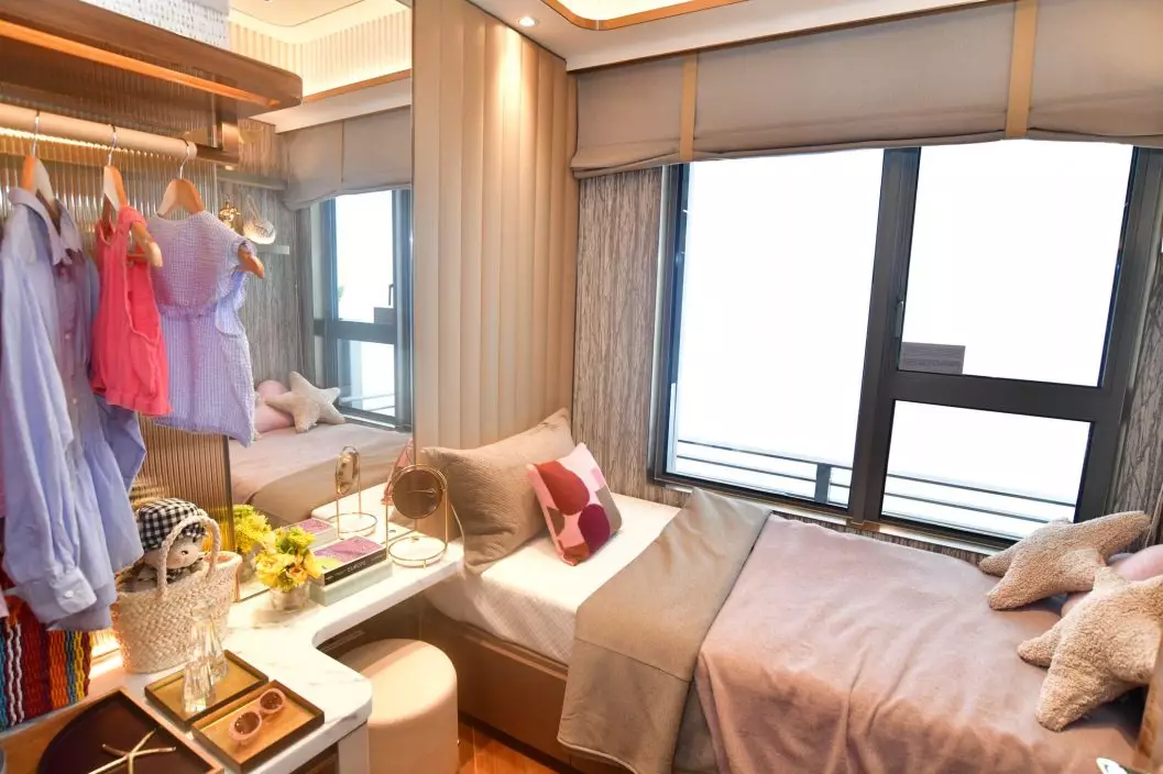 單位客廳及所有睡房同向,坐向東南望維港景致,且採用落地玻璃,採光度高,景觀開揚。