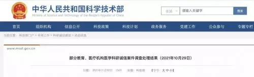 近日,科技部在網站公佈了新一批教育行政部門所屬教育、醫療機構醫學科研誠信案件調查處理結果,共有10份通報。
