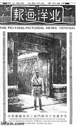 1928年8月1日,白崇禧游故宮,忽見宮裏居然有座「崇禧門」,在門前留影。