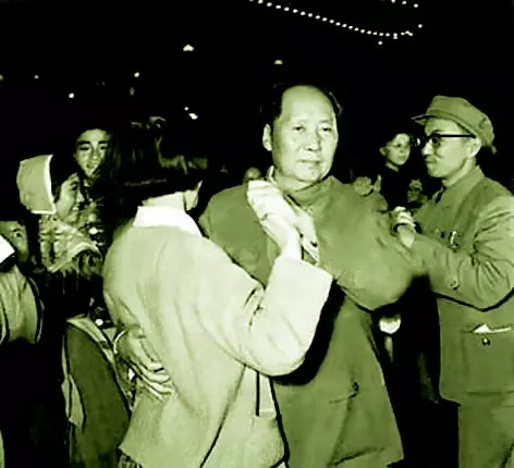 直到有一年的「五一」勞動節,一位聰明的男士,以祝賀節日為由,走上前和毛澤東握了一下手。他這個先例一開,霎時間,在場的男士們排起了一路縱隊,一個接一個跟毛澤東握手祝賀節日。有些平時缺乏主動邀毛澤東跳舞勇氣的女士,也插進隊裏和毛澤東握手。