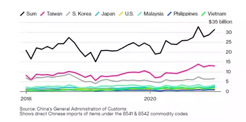 據中國海關數據顯示,2020年,中國進口芯片7大來源地分別是中國台灣、韓國、日本、美國、馬來西亞、菲律賓、越南,而SIAC聯盟成員企業覆蓋了上述國家和地區。