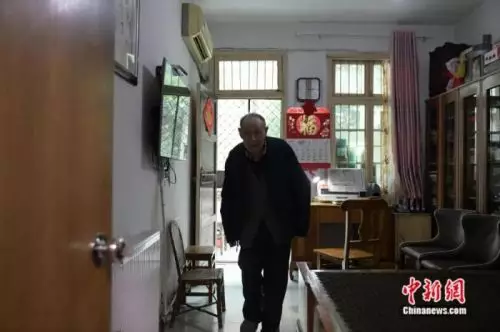張崇岫的住所約有70平方米,一些陳舊的書櫃、桌椅等擠滿客廳,牆壁上還掛著一個日久泛黃的空調和兩幅他喜歡的書畫作品。記者進屋,他弓著腰連忙拉椅子,示意記者坐下。