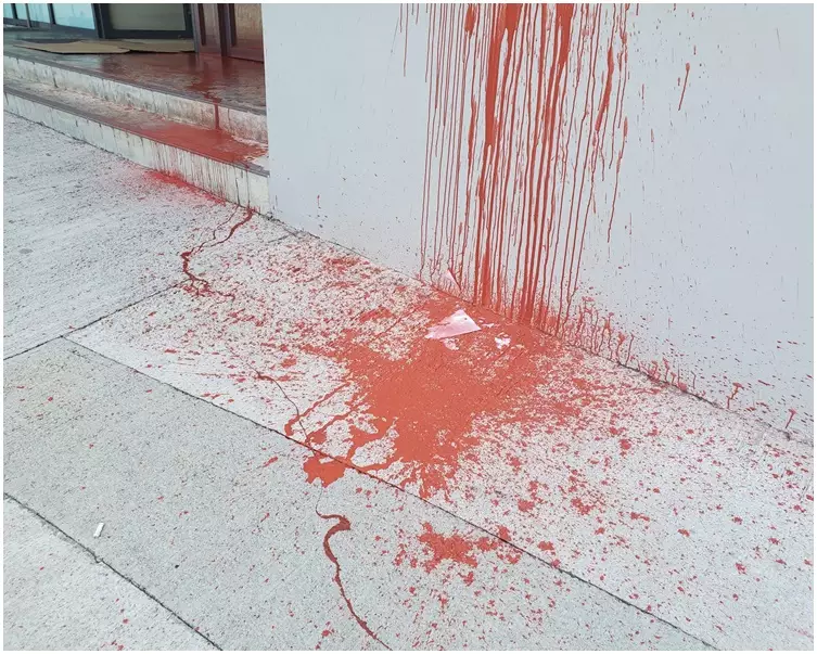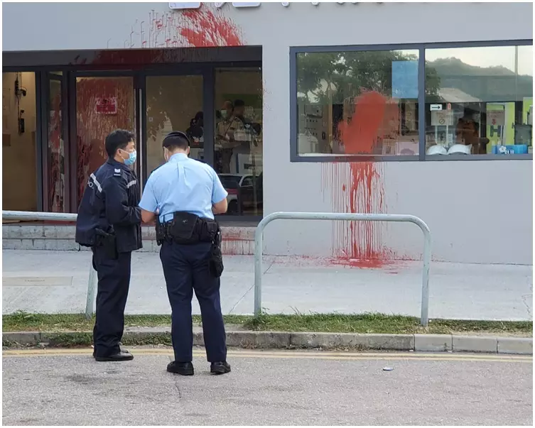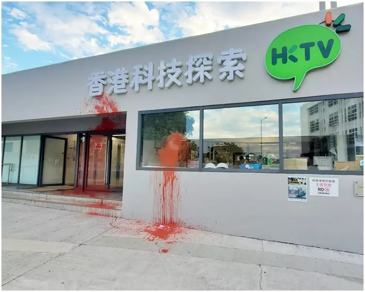 清晨5時許,兩名青年在將軍澳日出康城截乘的士到駿昌街,兩人落車後疑以紅油潑向HKTVmall辦公室,現場門窗及地上滿布油漬,並有一批懷疑追債字條。