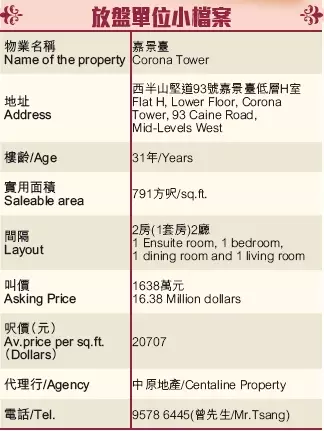 嘉景臺坐落西半山堅道,鄰近蘇豪區及半山自動扶手電梯,放盤不多,是次精選該盤2房套間隔,實用面積791方呎,裝潢簇新,甚有個性,單位外望區內樓景及樹景,尚算開揚,現叫價1638萬。