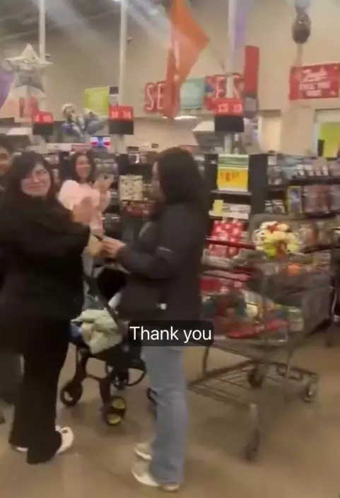 緊接著,現場氣氛出現轉折。員工黛絲塔妮(Destanie)透過廣播宣布,當日顧客購物車內的所有貨品將由超市代為付款,「今天,大家購物車裡的所有東西,我們都會幫你們買單,也祝大家聖誕快樂,未來也能繼續支持我們。」話音剛落,全場瞬間爆出掌聲與歡呼。顧客們驚喜不已,確認物品確實全數免費。