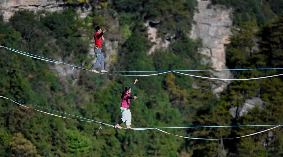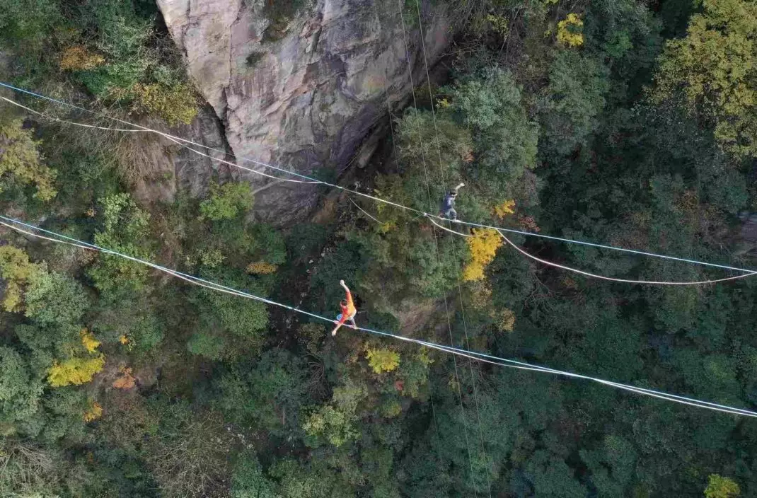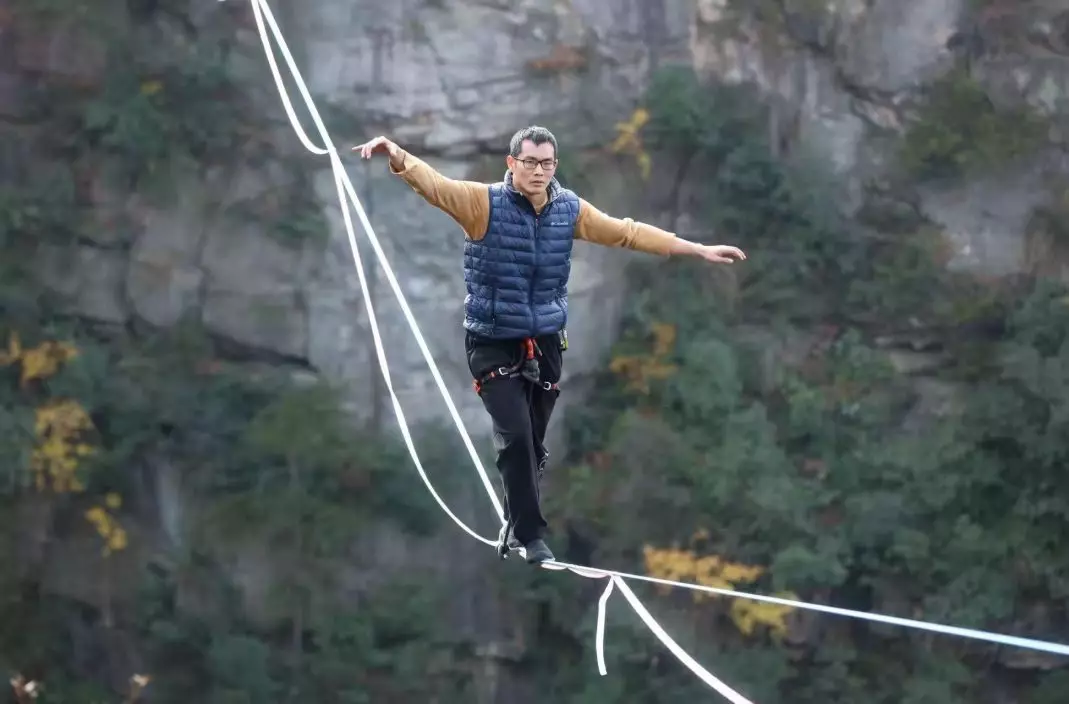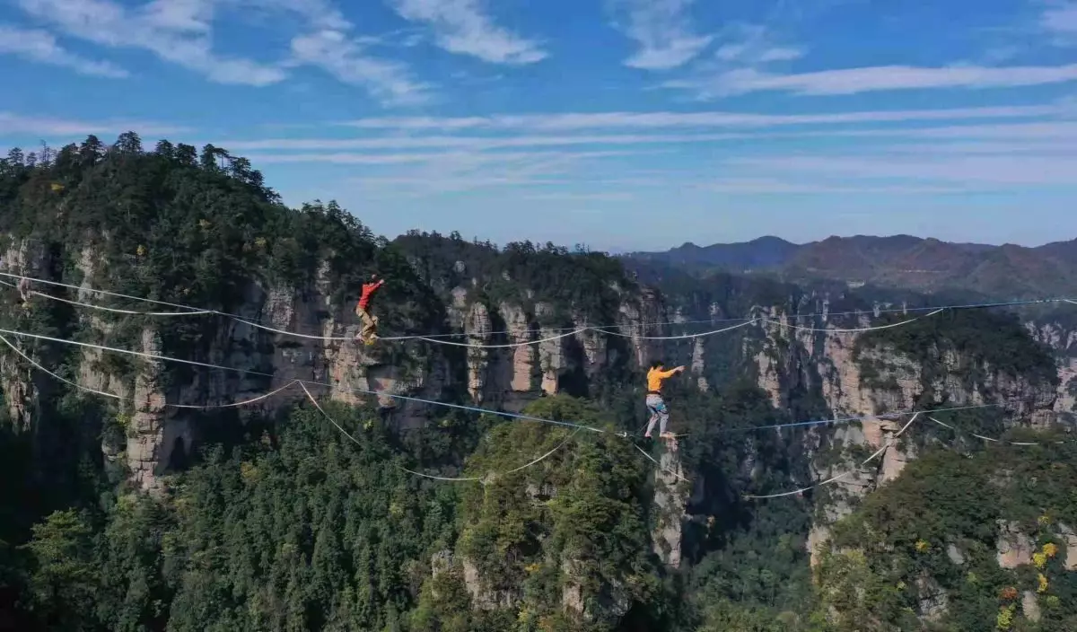 張家界舉辦「走繩挑戰賽」 參賽者千米高空行走自如