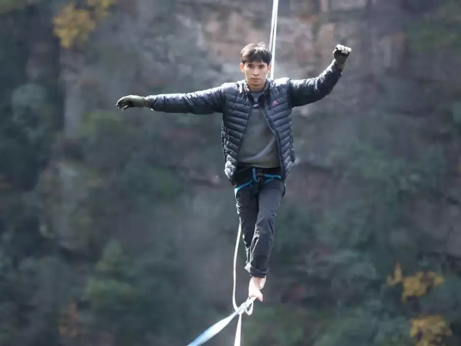 今年的總冠軍是來自河南濮陽的胡記恩。他勝出後笑指:「因為喜歡挑戰,所以熱愛這項運動。一次次挑戰,讓我的生活收穫了很多新鮮感……張家界是一個很適合走扁帶的地方,我很享受行走在雲海之上、山峰之間的感覺。」