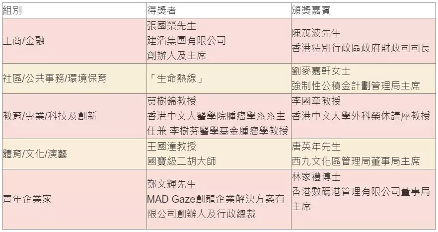 她表示,觀察過去二十多屆傑出領袖得獎者,總結傑出領袖的特質,是「勇於創新,敢於實踐」。她呼籲各界的傑出領袖,可於明年7月1日加入「已降溫的廚房」,服務香港。