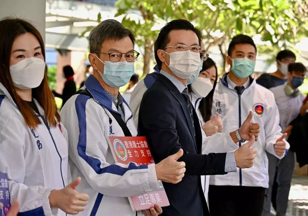 愛護理服務集團創辦人何崇漢(左3)交提名競逐功能界別醫療衞生界議席,香港護士協會成員到場支持。