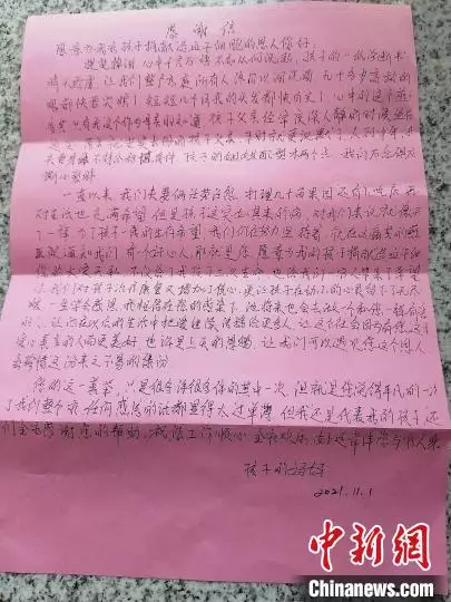 「感謝給我孩子捐獻造血幹細胞的恩人……也許是上天的恩賜,讓我們遇到您這個恩人,您的大愛我也將延續,我也會盡自己最大的力量去幫助需要幫助的人。」幾天以後,王明收到患者家屬寄來的感謝信和一部嶄新的iPhone13。