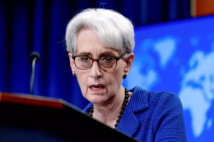 謝爾曼指,由於「與會議無關的日韓雙邊分歧」,聯合記者會改為她獨自舉辦。AP資料圖片