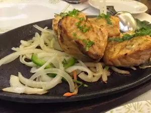 點這道菜的時候,我們以為可能只有一塊三文魚,但原來事實上分量不少喔!! 燒烤以鐵板上,送上來是還是輕煙徐徐,很香呢。三文魚表層燒得稍微香口,然後加上一點點印度式香料,但是裡面肉質仍然保持嫩滑。加點檸檬汁可以提鮮哦!