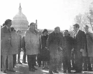 鄧小平副總理1979年1月30日在華盛頓同美國參議員們共進午餐。圖為議員們在參議院門外熱情迎接。